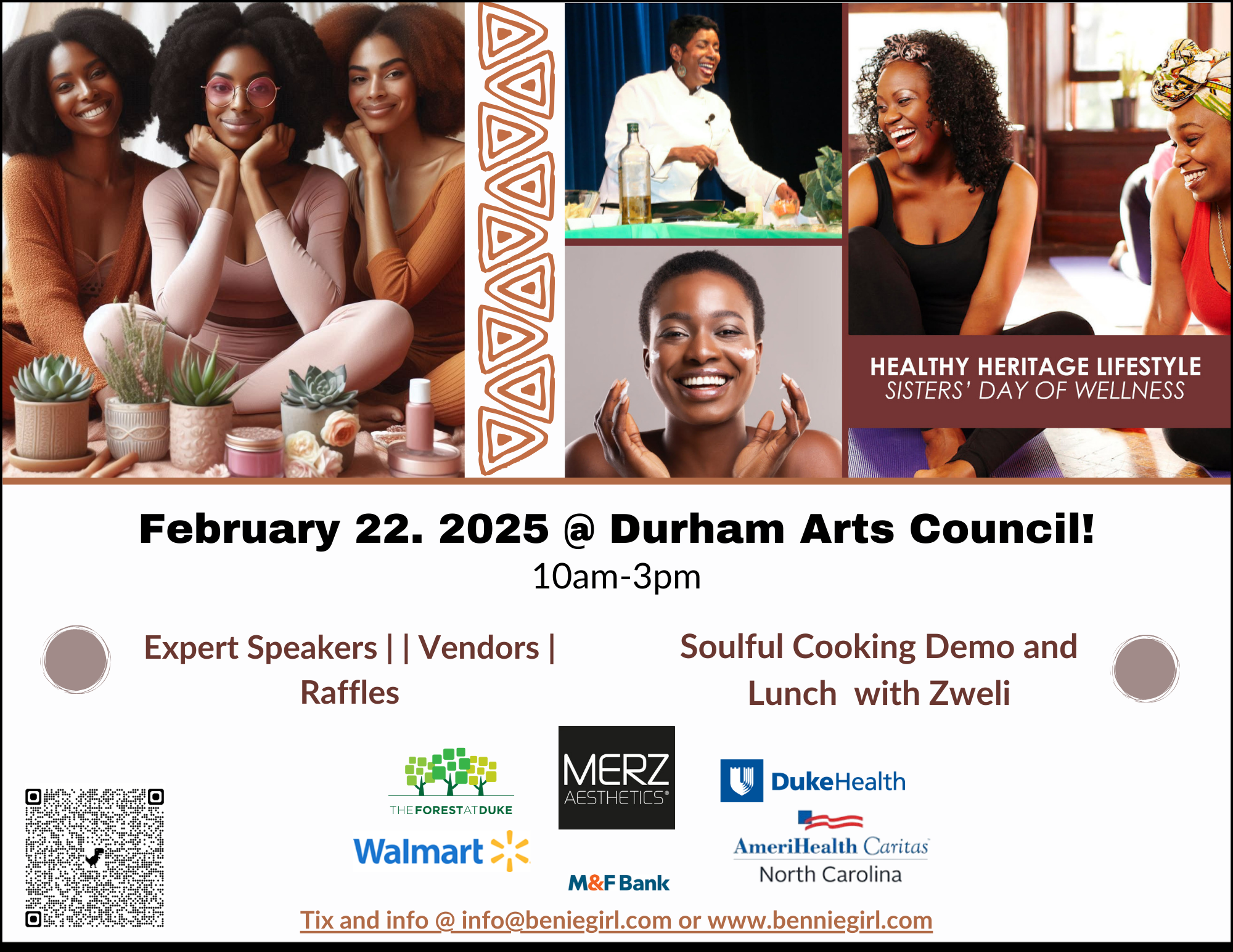 We are looking for volunteers to assist on the day of our upcoming Healthy Heritage Lifestyle Sisters' Day of Wellness event occurring February 22 2025 at Durham Arts Council.