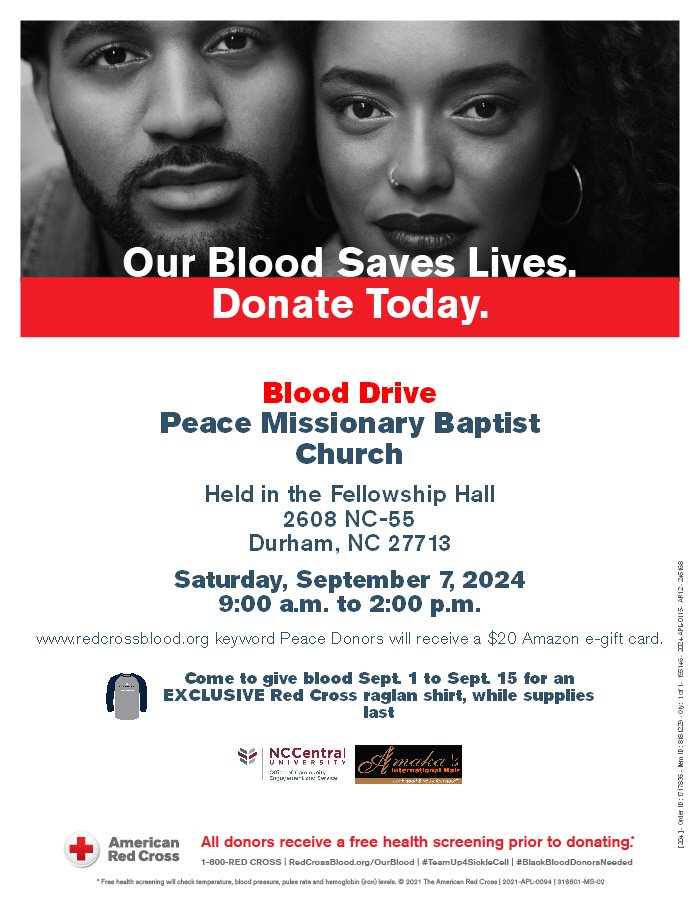 To Participate: Schedule your appointment at www.redcross.org, with the keyword Peace Donors.